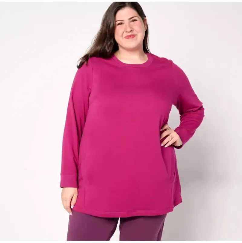 Whether you’re out on a morning run or just running errands, this workout-ready long-sleeve tunic is a capable choice. It features side pockets that are perfect for an MP3 player or any other small essentials. From Denim Co.(R) Fashions.