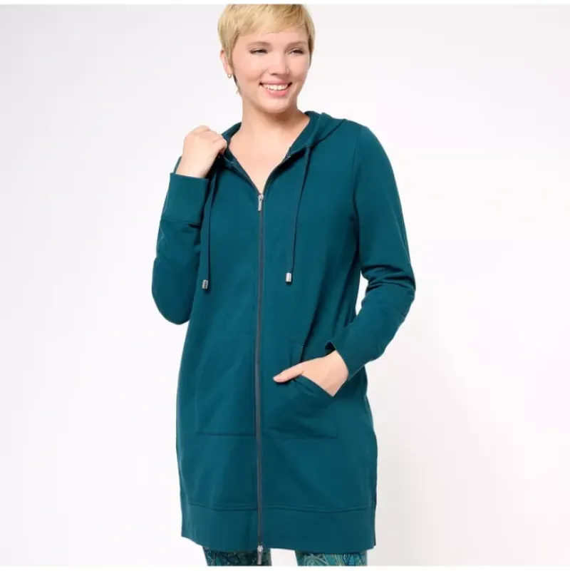 Sometimes you want a little more coverage when wearing your favorite leggings or skinny jeans. IYKYK. Enter: the perfect hoodie (no, we aren’t exaggerating!). Not only does it have the style details you love — like ribbing along the hem — but its comfort and function blows other hoodies out of the water. A full zipper front is perfect when pairing it with tees, tanks, or turtlenecks. And thanks to side slits, that longer length you adore is never restricting. Did we mention the oh-so cozy French terry fabrication? It just keeps getting better. From Denim Co.® Fashions.