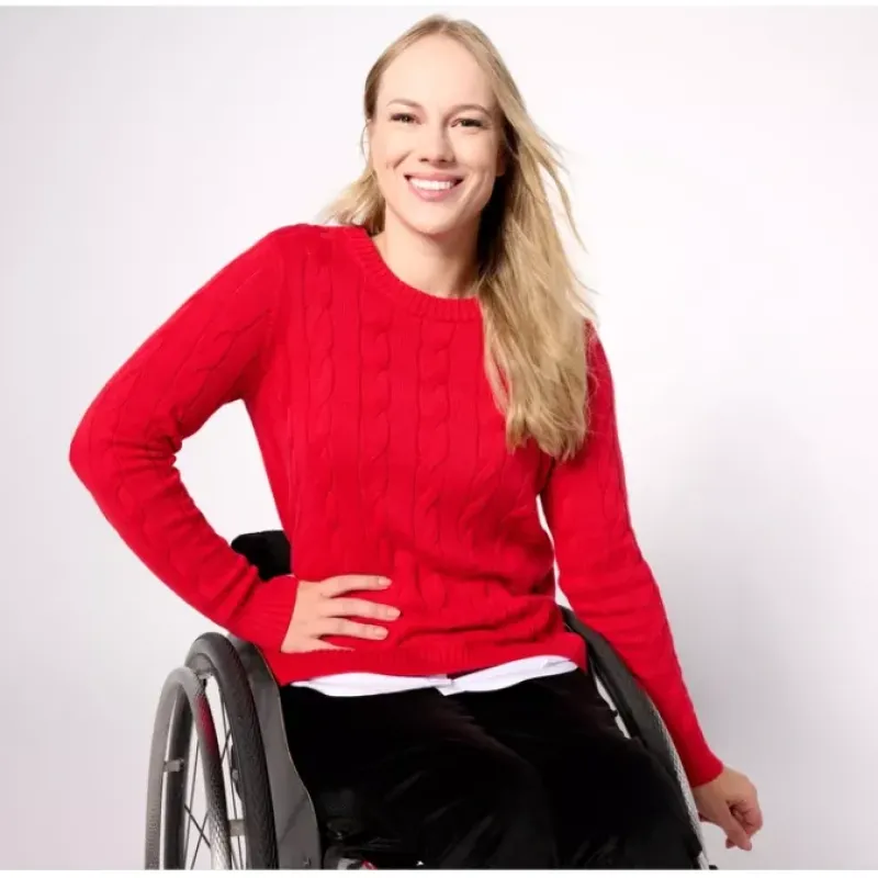 How do you make a work-to-weekend cable-knit classic even better? You add a shirttail bottom for a graceful layered look (and no additional bulk). From Denim Co.® Fashions.