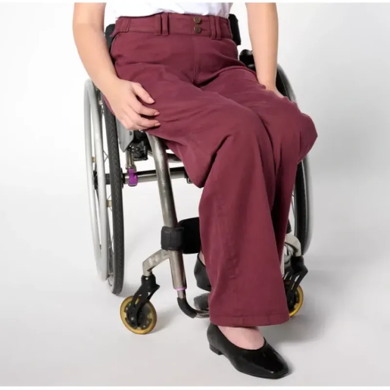 - Adaptive Features: seated fit, three pull loops inside waistband, metal zipper set in wearer’s right top side