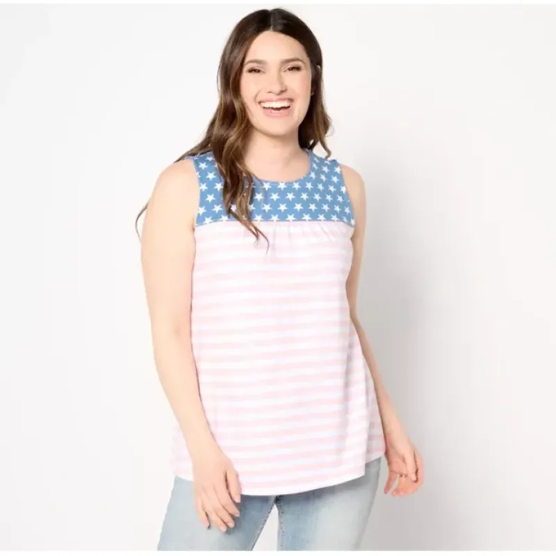 Bring on the barbecues and beach getaways! This standout stars and stripes swing tank makes a cheerful choice for all your summertime outings. From Denim Co.®.