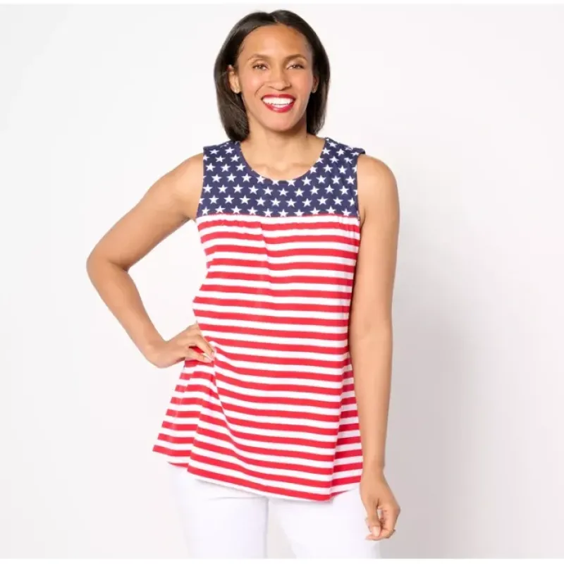 Bring on the barbecues and beach getaways! This standout stars and stripes swing tank makes a cheerful choice for all your summertime outings. From Denim Co.®.