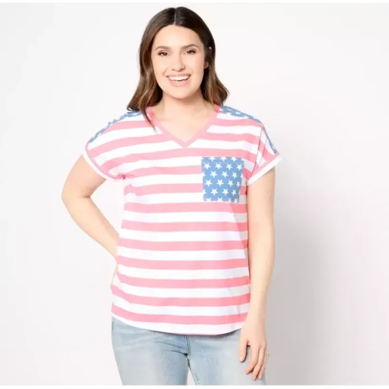 From Memorial Day picnics to 4th of July getaways to Labor Day barbecues, this Americana top celebrates your patriotic pride with a stylish stars and stripes design. From Denim Co.®.