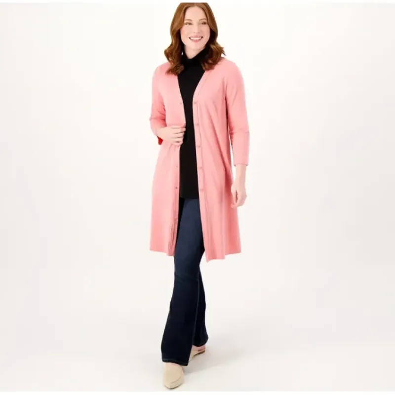 A layered look you’ll love to live in, this long cardigan keeps you wonderfully warm while looking casually cool. Be sure to button up the comfy Cozy KnitTM fabrication — a balanced blend of soft cotton and modal (with a touch of spandex). From AnyBody® Lounge and Sleepwear.