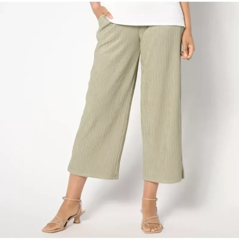 Phone a friend. The effortless elegance of these crinkle knit crop pants is worth talking about! And while you’re at it? Make a date for the theater, that new brunch place, or drinks on your back deck. The body-skimming style can lean casual or dressy with just a simple swap of shoes and accessories. From the Joan Rivers Classics Collection®.