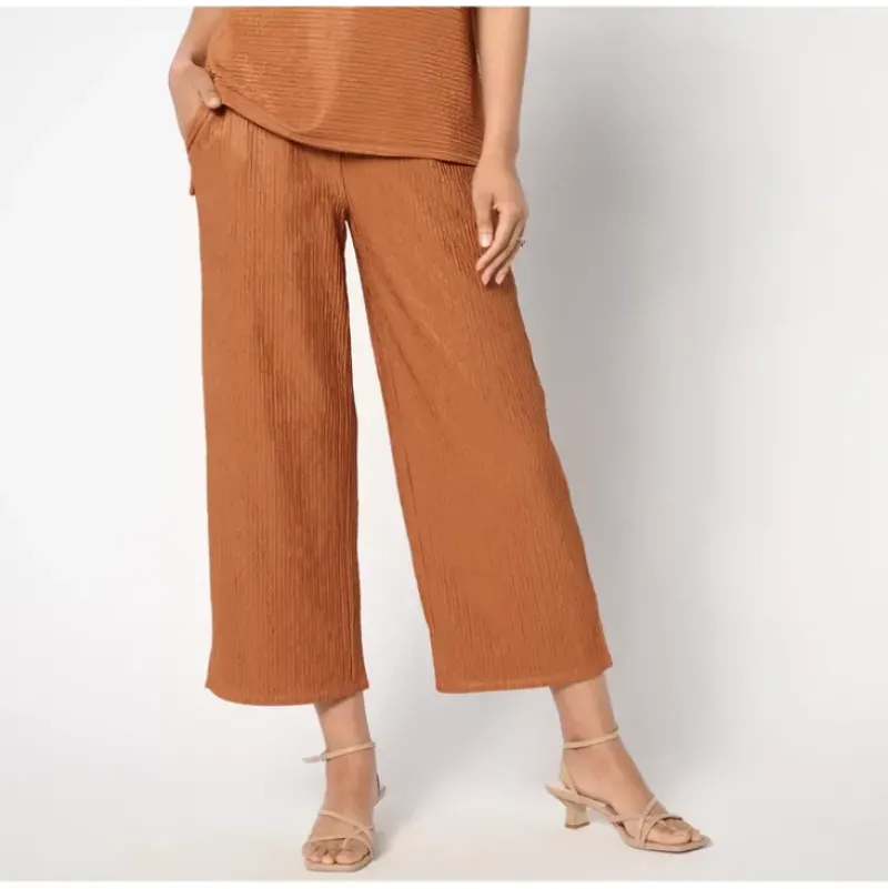 Phone a friend. The effortless elegance of these crinkle knit crop pants is worth talking about! And while you’re at it? Make a date for the theater, that new brunch place, or drinks on your back deck. The body-skimming style can lean casual or dressy with just a simple swap of shoes and accessories. From the Joan Rivers Classics Collection®.
