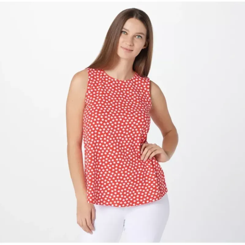 Swing into warmer-weather events in style with this printed jersey knit tank that flatters your figure with a swing silhouette. From Denim Co.® Fashions.