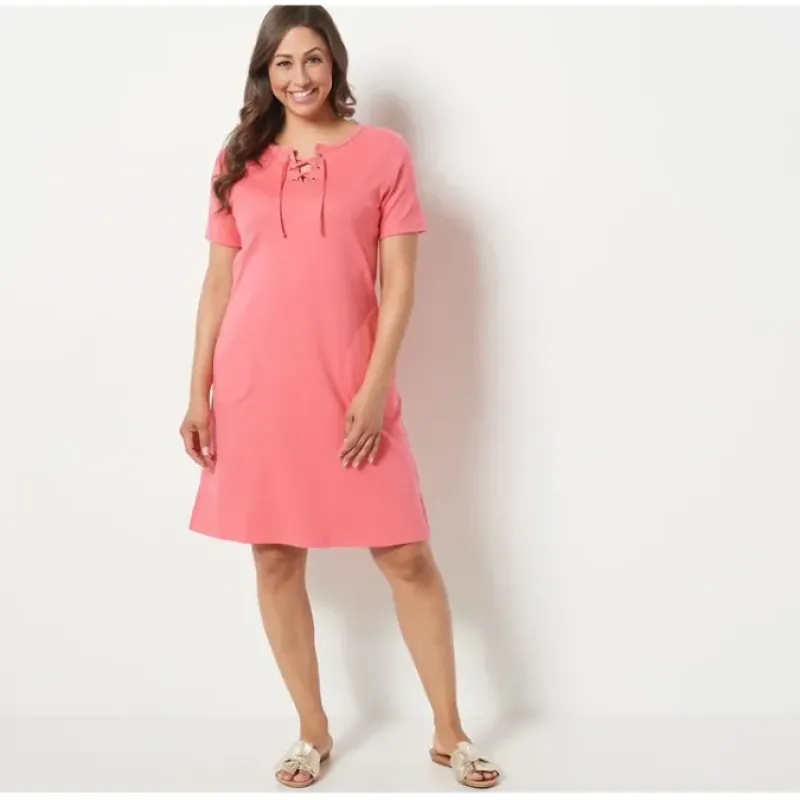A must-have for easy-breezy summer days, this delightful dress pulls together a sweet and sassy silhouette with a lace-up detail at the neckline. From Quacker Factory®.