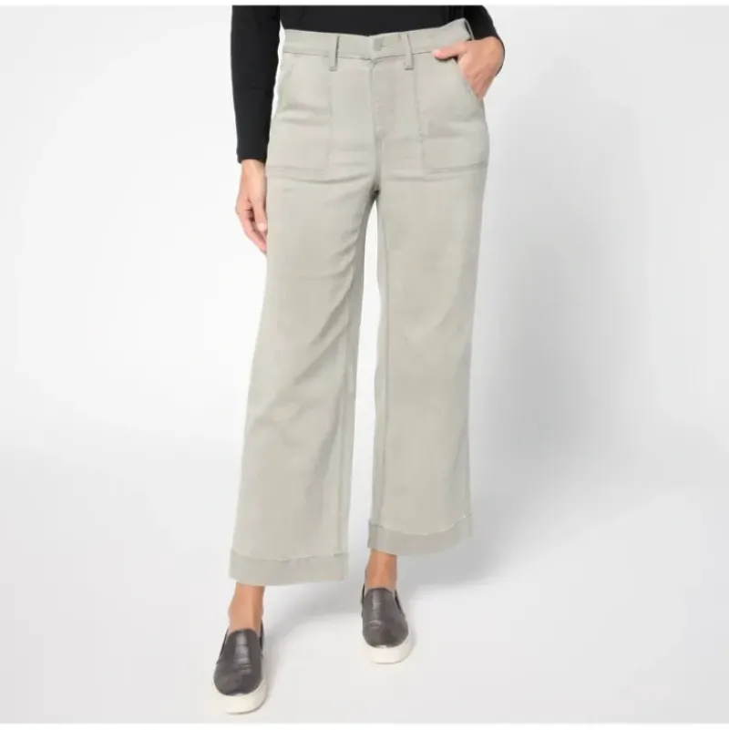 Elevate your everyday style with the Denim Co. regular grey easy stretch wide leg ankle jean. These jeans offer a comfortable fit with a slightly below-the-waist rise and a wide-leg shape, perfect for pairing with your favorite tops and shoes. From Denim Co.