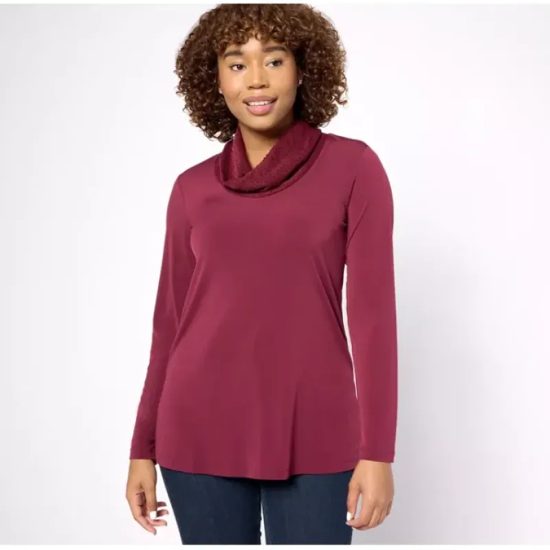 A sequined cowl neckline elevates this top from lovely to fabulous. Wear it any time you want to dress up your everyday look. From Susan Graver.