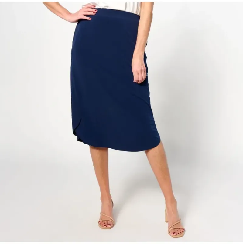 Style this curved-hem skirt with a tee and sneakers for out-and-about weekend plans, or dress it up with a blouse-blazer combo and modern block heel for your workweek. Either way, the easy-care Liquid Knit® style is as minimal effort/max polish as it gets. From Susan Graver.