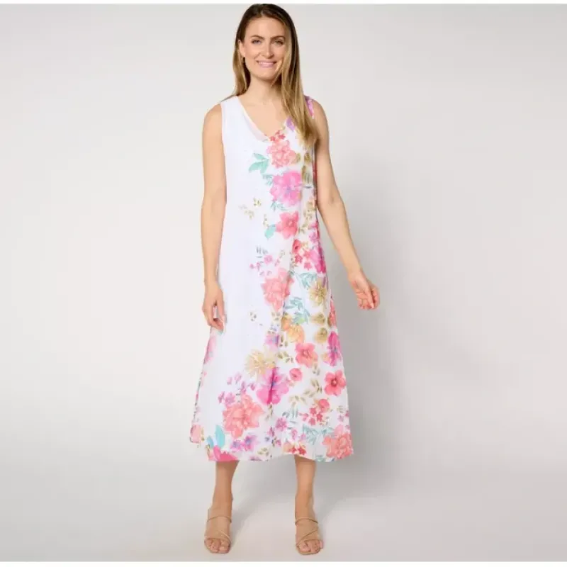 Opt for something a little special when you slip into this printed chiffon midi dress. Pair it with favorite accessories and strappy sandals and you’re ready for any occasion. From Susan Graver.
