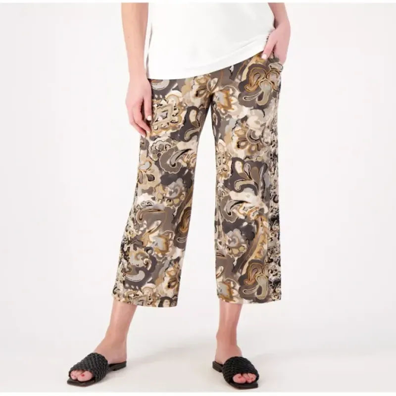 So, not only do these printed crop pants elevate the style of your daily fashion rotation, but they also gift you with the smooth softness only Liquid Knit® provide. From Susan Graver.