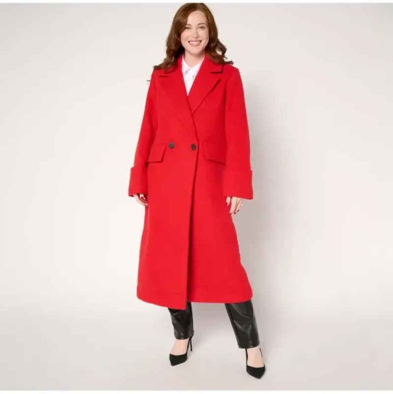 - Features: oversized, double-breasted button closure, notch collar, turned-over cuffs, oversized welt pockets with flap, back vent, fully lined