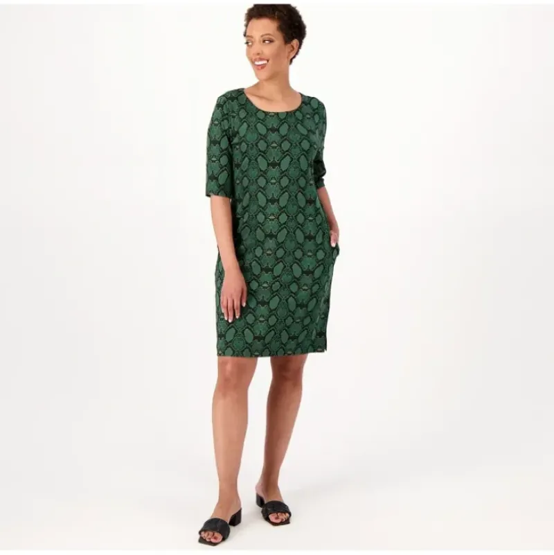 Match this totally chic printed dress with your cutest flats, your go-to canvas shoes, or your newest heels (yes, it’s thatversatile!) to create one fab ‘fit. From Women with Control®.