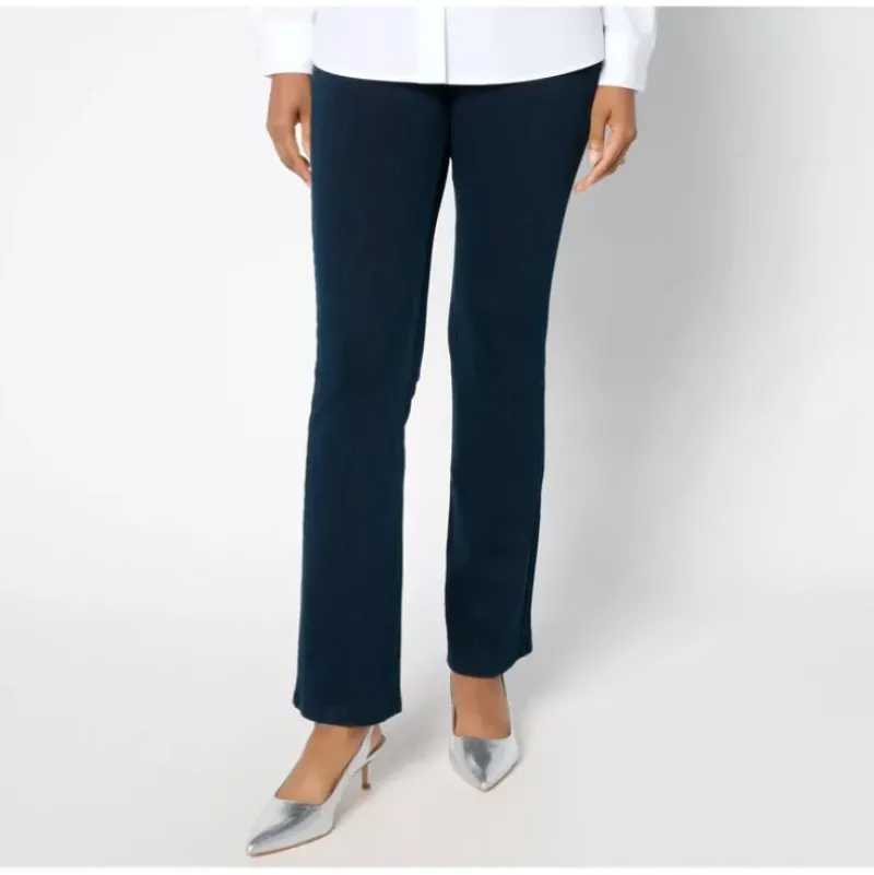 When you can enjoy a pant that provides the look of denim with the feel of a comfy knit, we call that a wardrobe win-win! Add in sleek and shapely support and a baby bell leg? That’s a win-win-win!! From Women With Control®.