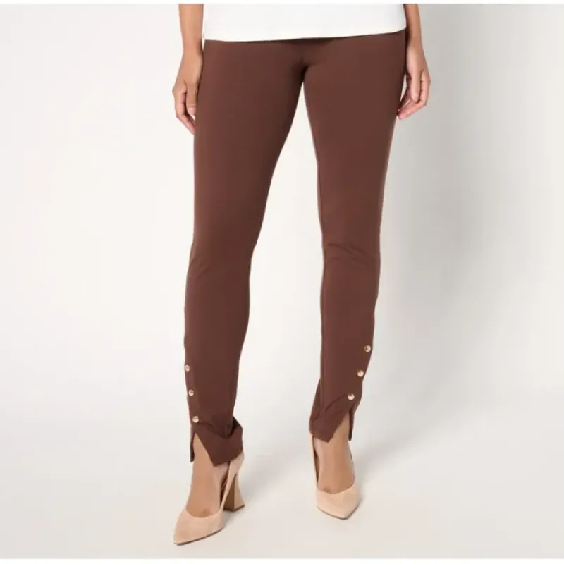 Love the look of knit but worried it won’t support? Not here! These sleek slim-leg pants provide built-in Tummy Control without the need for a shaper or compression garment, so you can go about your day feeling comfortable, confident, and totally chic (thanks to functional angled snaps at the leg opening!). From Women with Control®.