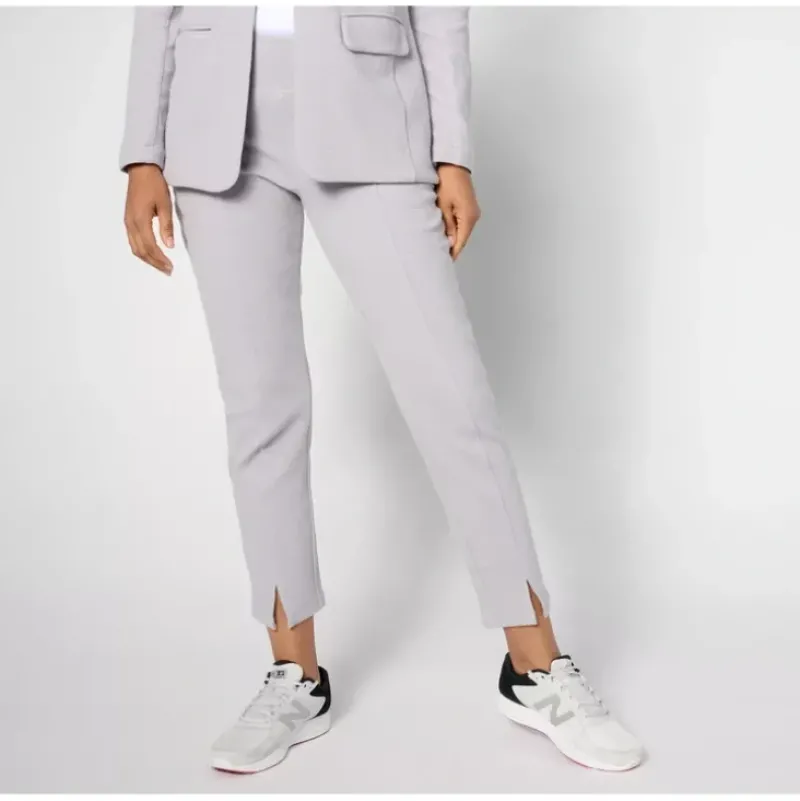 Work the room in these textured ponte pants that easily transition from work to weekend. Front seams with a notch at the hem elongate the legs while adding visual appeal. From zuda®.