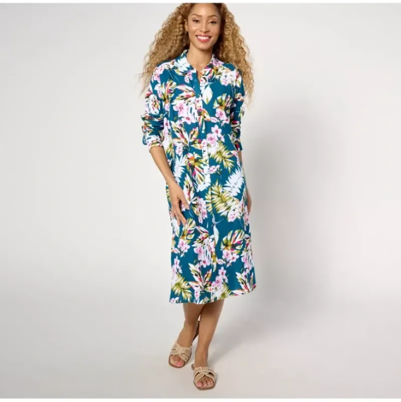 Lengthy with lots of coverage, this gotta-have gauze cover-up likes to travel well beyond the beach. Wear it unbuttoned and paired with a tee and crops or your favorite midi tank dress for a burst of boho-chic. From Denim Co.® Fashions.