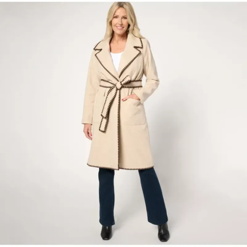 Bundle up, beautifully. This belted double-knit coat from BEAUTIFUL by Lawrence Zarian is the timeless, tailored outerwear revamp your closet’s been craving — made extra luxurious with contrast blanket stitching and a full lining. Its clean lines get you out of the puffer zone, layering elegantly over fall’s blouses and denim, winter’s sweaters, and dresses for all seasons and celebrations. Brushed double knit is a fine-quality, mid-weight fabrication that’s versatile enough to wear throughout fall/winter.