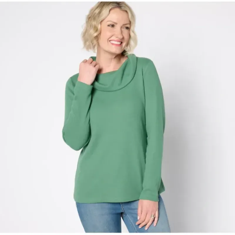 Cowl-neck crazed? We really don’t blame you. This long sleeve top also plays with texture (we love waffle knit). From Denim Co.® Fashions.