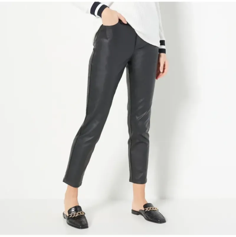 With a shiny coating, these stretch-able pants give the look of faux-leather with the feel of your favorite cozy pair. Wear them with a bulky sweater and snakeskin booties, for a show-stopping look through the holidays (and beyond!). From Susan Graver.