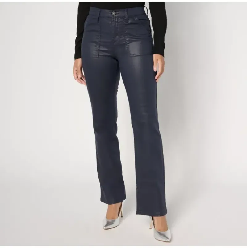 The coolest thing to happen to denim since acid washing, these coated boot-cut jeans are ready to party — or just put the yay in your Friday! From nicole by Nicole Miller.