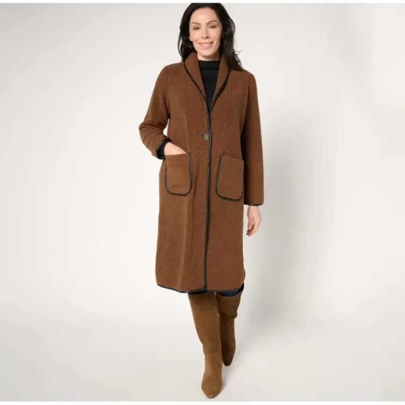 Time to bundle up? With this duster-length Teddy coat from NIC+ZOE, your sense of style won’t go undercover. Chic, cultured, yet oh-so cozy, this fully lined statement-making outer layer, with faux-leather trim, has major impact, complementing your fashion savvy even when temps start to drop. From NIC+ZOE.