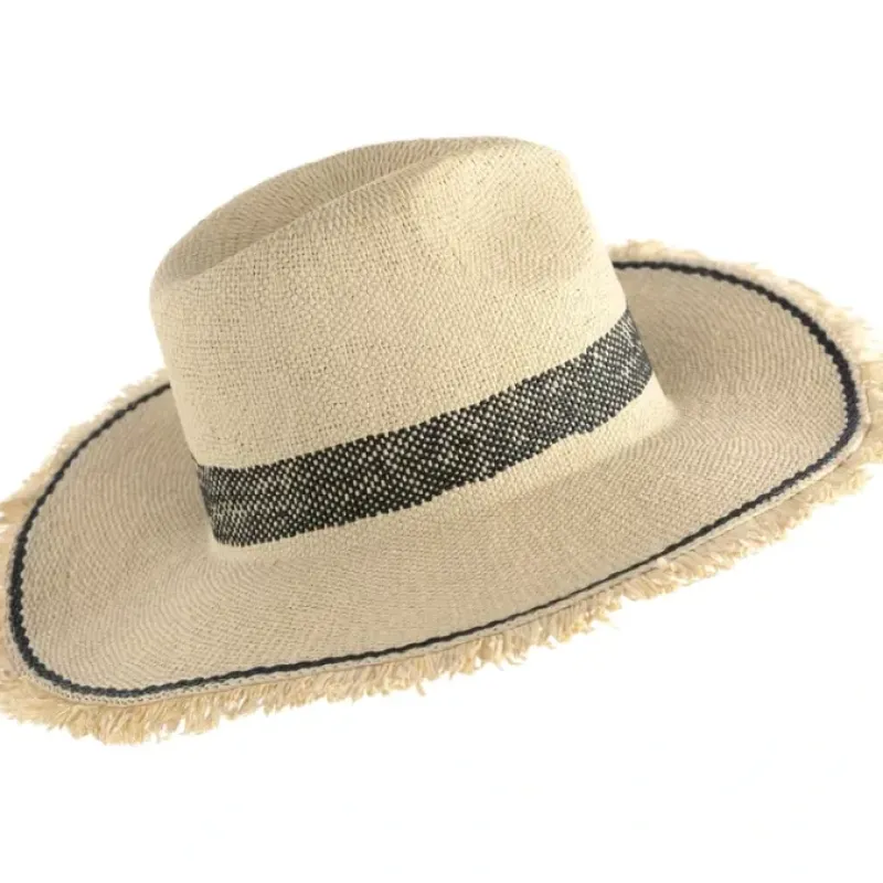 Elevate your warm-weather outfits with the Ari hat, featuring an eye-catching fringe brim detail and a chic color strip on the crown and brim edge. This woven paper straw hat is not only stylish but also adjustable to ensure a perfect fit for any outdoor adventure or beach day. From Shiraleah.