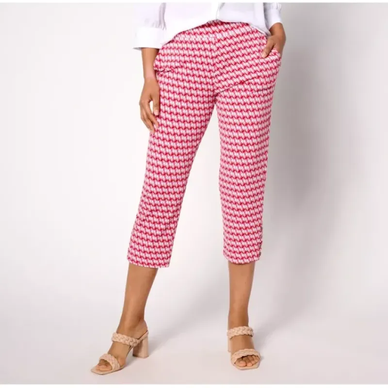 Great news for Liquid Knit® lovers — the season’s most sought-after cropped pants are now crafted in the flowy feel-good fabric. Shiny buttons dress things up on this printed take. Simply add a button-front shirt and heeled sandals for an effortless and polished ensemble. From Susan Graver.