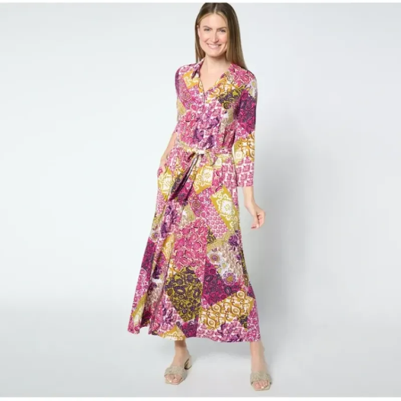 Are you ready for a maxi makeover? Ditch the solid styles and opt for a more dramatic look with this statement-making printed dress. A fab find for get-togethers and get-aways, pull together the figure-flattering silhouette with the included belt. From Susan Graver.
