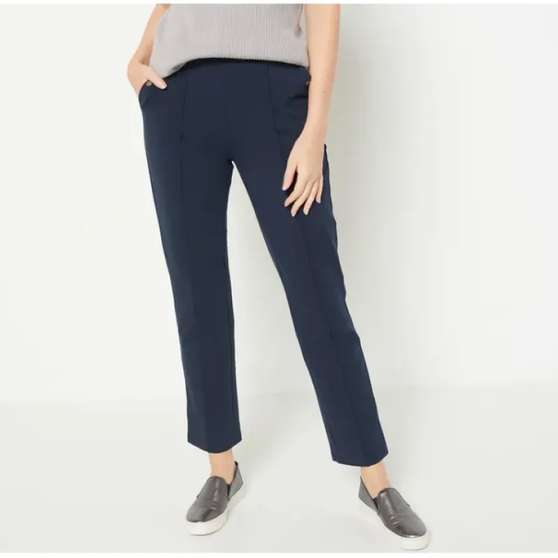 The most important feature of business casual has to be comfort, and Susan understood the assignment when she crafted these ankle pants. With a flattering slim fit, sharp pin-tuck details, and a premium stretch feel, no boxes were left unchecked. From Susan Graver.