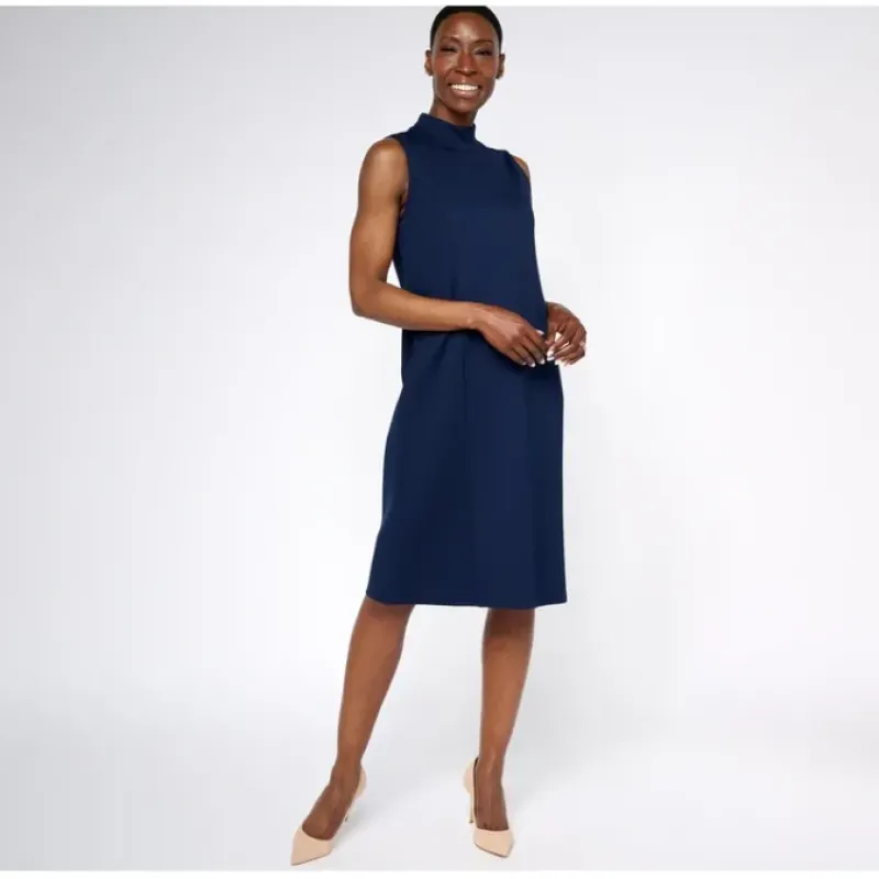Chillier temps don’t mean we have to ditch the dress. This Smart Ponte knit mock neck easily transitions into fall and beyond. Just add a cute cardi or tailored jacket for an extra layer of warmth, and continue your love affair with fabulous frocks. From Susan Graver.