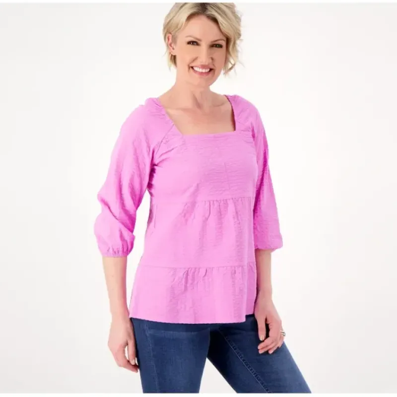 Everything about this lovely top exudes feminine beauty — from the squared elastic neckline to the tiered design. From Denim Co.® Fashions.