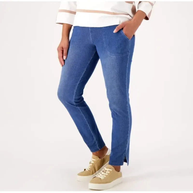 - Features: Tummy Control with Blu-Tec Control SystemTM, stretch denim, front pockets, side slits