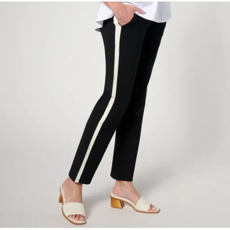 If you haven’t tried contrast-seam pants (a.k.a. tuxedo stripe pants) recently, stop right here. This hardworking, trend-right pair visually elongates the legs and smooths the tummy — just pull on and go! From Women with Control®.