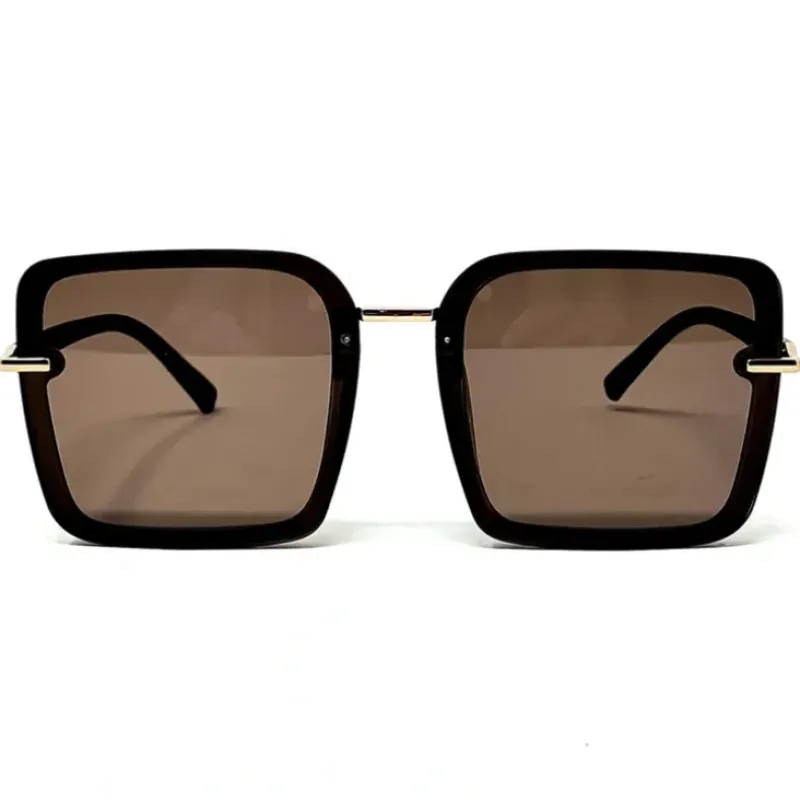 - Plastic geometric frames with goldtone plastic bridge and hinges, polarized, black temples