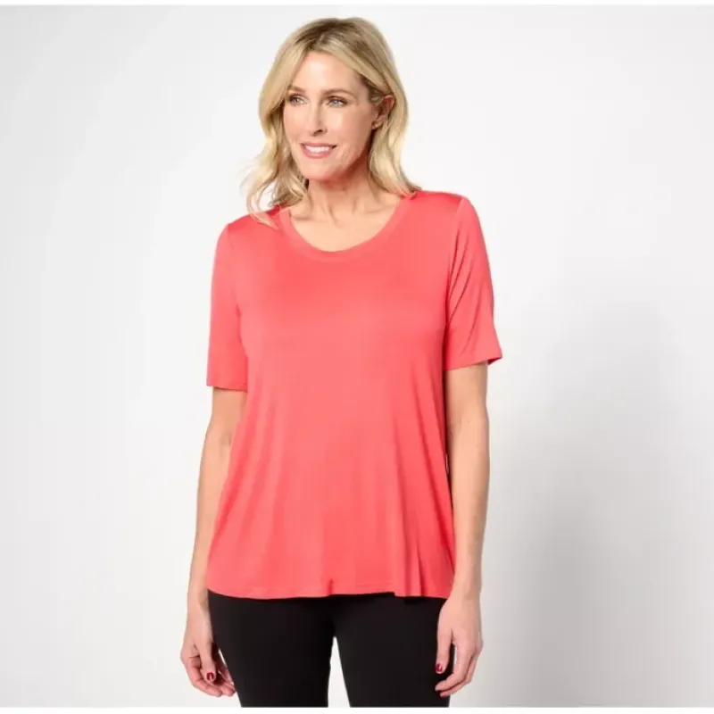Business in the front, party in the back! This short-sleeve top features a key-hole cutout, shirring, and a rounded hem in the rear so you’ll always look good coming and going. From zuda@reg;.
